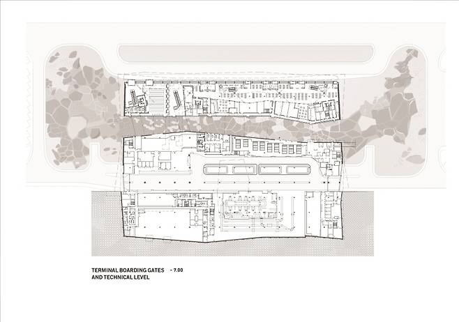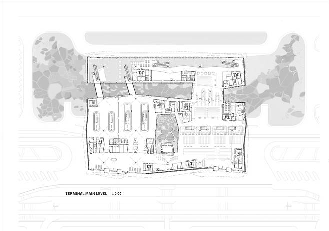 터미널 주변의 조경은 산과 계곡을 형성하는 삼각주(Delta Fan)에서 영감을 얻은 것으로 주변 자연환경의 문맥과 통합하고자 하는 시도를 보여준다. 델타 강의 구불구불한 지류의 흔적이 유도로 조경 공간을 따라 매끄럽게 흐르듯 이어지고 터미널과 지원시설을 향해 힘 있게 뻗어가고 있는 형상이다. 공항 건설 시 가급적 지역에서 생산되는 건축 재료와 식물 등을 조경시설로 활용하고자 한 점도 특색 있다. 활주로 건설을 위한 기반 시설은 인근의 모래와 바위, 자갈을 분쇄하여 만들었고, 발굴한 토지는 건설을 마무리 자연환경과 자연스럽게 어우러지도록 조경 처리했다. >>Design Management_ Amir Mann, Architect/ Amir Mann-Moshe Zur-Ami Shinar-Orna Zur Architects, 자료_ Amir Mann-Ami Shinar Architects and Planners, Moshe Zur Architects, Photos by Hufton + Crow, 기사 출처_ 에이앤뉴스 AN NEWS(ANN 뉴스센터) 제공