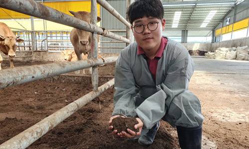 “축사가 있으면 냄새 난다고 민원이 많이 들어오거든요. 그런데 커피찌꺼기가 탈취효과가 있다고 하잖아요? 혹시 톱밥 대신 찌꺼기를 써보면 어떨까 싶었죠.”