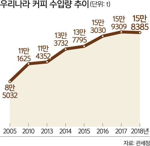 지난해 우리나라 커피 수입량은 15만t을 웃돌았습니다. 5년 전에 비해 38.5%나 늘어난 양입니다.