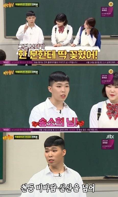 군 생활 중 좋아한 걸그룹을 묻는 질문에 이찬혁은 "군대에서 '유희열의 스케치북'을 챙겨 봤다. 그러다 한 분한테 딱 꽂혔다"며 국악소녀 송소희를 꼽았다. 이에 이수현 역시 "오빠가 휴가 나와서도 계속 영상을 보여주더라. 노래도 따라서 부르고 했다"고 증언했다.