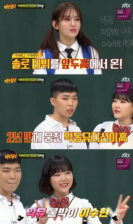 8일 오후 방송된 JTBC '아는형님'에서는 악동뮤지션 이찬혁-이수현, 전소미가 전학생으로 출연했다.