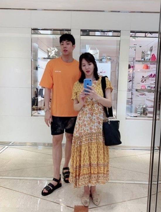 공개된 사진 속 정아는 남편인 농구선수 정창영과 함께 거울 셀카를 찍고 있다. 특히 임신 중에도 여전히 아름다운 미모가 눈길을 끈다.