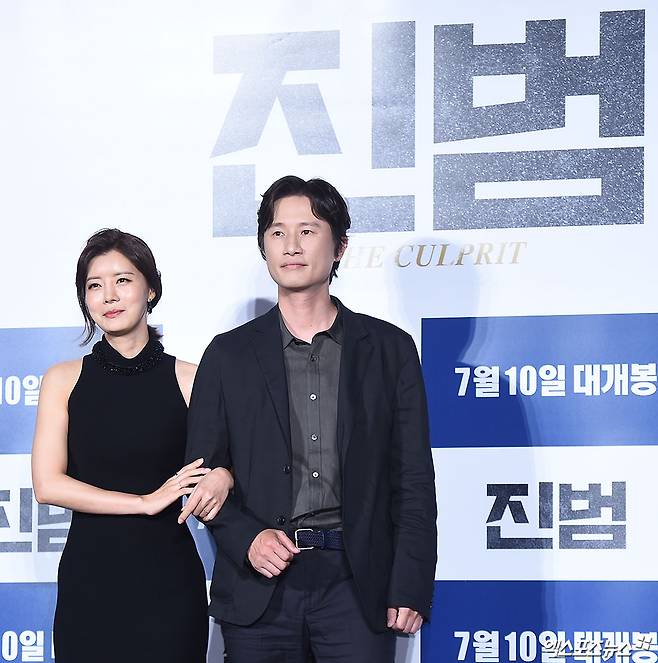 [엑스포츠뉴스 박지영 기자] 11일 오전 서울 자양동 롯데시네마 건대입구점에서 열린 영화 '진범' 제작보고회에 참석한 배우 유선, 송새벽이 포즈를 취하고 있다.