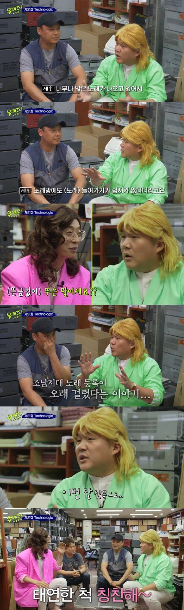 직원은 "그건 인지도가 없어서 그렇다"고 일침을 가했고 조세호는 "우린 다행히 이번달 신곡으로 들어갔다. 너무 기뻐서 내 SNS에도 올렸다. 많이 불러주셨으면 좋겠다"고 태연하게 대답했다. 유재석은 "조세호가 순간 당황했는데 당황하지 않고 대답했다"며 조세호를 칭찬했다.(사진=tvN '유 퀴즈 온 더 블럭' 캡처)