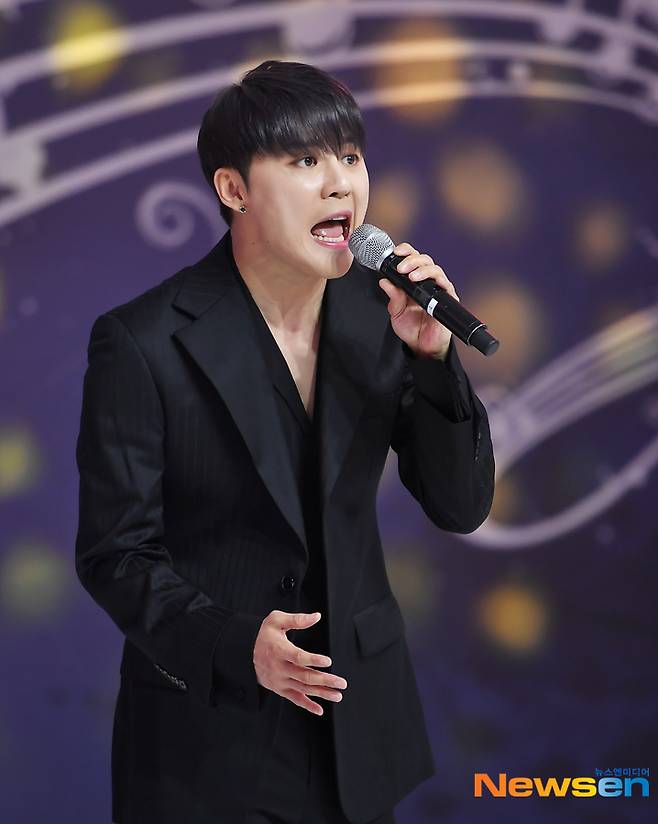 이날 가수 김준수가 참석하여 열창하고 있다.