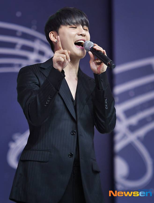이날 가수 김준수가 참석하여 열창하고 있다.