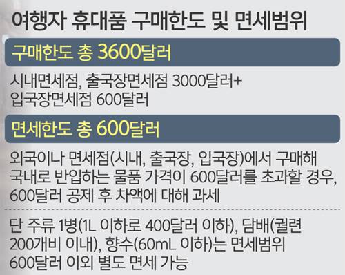 다만 면세한도 600달러 상향은 간단치가 않다. 정부는 1996년부터 400달러이던 면세한도를 2014년 9월 600달러로 높인 상황이라 추가 상향은 입국장면세점 시범운영 추이 등을 지켜보고 검토한다는 입장이다. 한도를 높일 경우 해외여행을 자주 가는 일부 계층에 혜택이 집중되고, 세수가 줄어드는 부작용도 검토해야 한다. 날로 급증하는 해외 직접구매(직구)의 면세 범위까지도 고려해야 한다. 무엇보다 경제협력개발기구(OECD) 평균 면세한도가 510달러인 것을 감안하면 현재 우리나라 면세한도 600달러가 적지 않다는 지적도 여전하다.