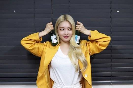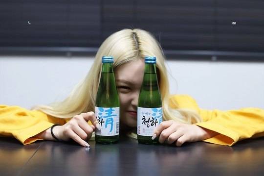 사진 속 청하는 소주병을 양손에 든 채 장난기 가득한 표정을 짓고 있다. 청하는 이름이 똑같은 소주 브랜드 모델로 활동 중이다.