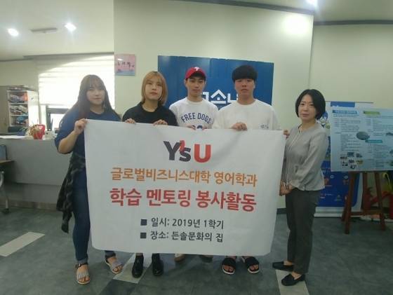 와이즈유(영산대학교)는 최근 영어학과 재학생 7명이 부산 해운대구 반송동에 위치한 청소년 문화의 집에서 지역 초등학생을 대상으로 영어교육 봉사활동을 펼쳤다고 19일 밝혔다.