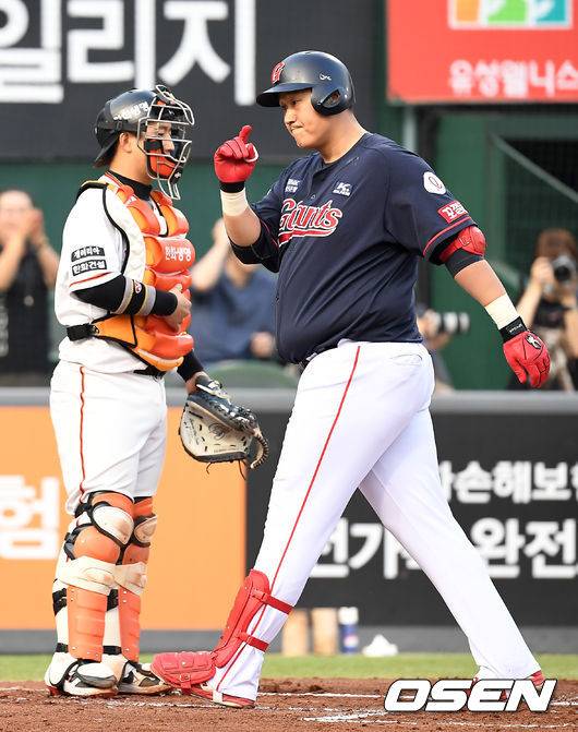 2회초 무사 롯데 이대호가 솔로 홈런을 때린 뒤 세레머니를 하고 있다. /youngrae@osen.co.kr
