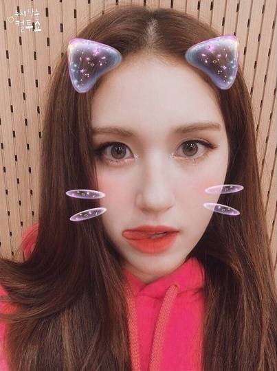 사진 속 전소미는 휴대폰 사진 애플리케이션 속 효과로 귀여운 매력을 발산하고 있다.