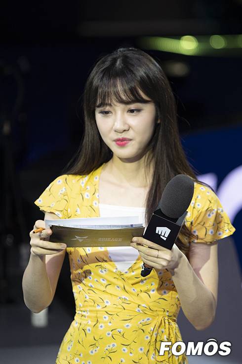 21일 오후 서울 롤파크에서 LCK 서머 1라운드 샌드박스 게이밍과 아프리카 프릭스의 경기서 샌드박스가 4연승을 달렸다. 경기 후 김민아 아나운서가 인터뷰를 준비하고 있다.