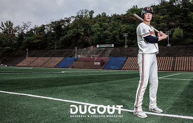 대학에서 제일 좋아진 부분이 타격이에요. 터닝 포인트가 있었던 건 아닌데 감독님이 4년 동안 저를 믿고 기용해주신 게 자신감을 만들어줬어요. (이건열 감독하고는 많은 대화를 나누는 편인가요?) 아뇨. (웃음) 감독님은 과묵하신 편이에요, 대화를 하기보다 타격이 좀 주춤할 때 가끔 오셔서 이렇게 해보라고 지도해주세요.