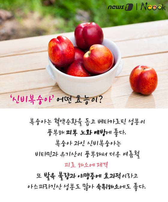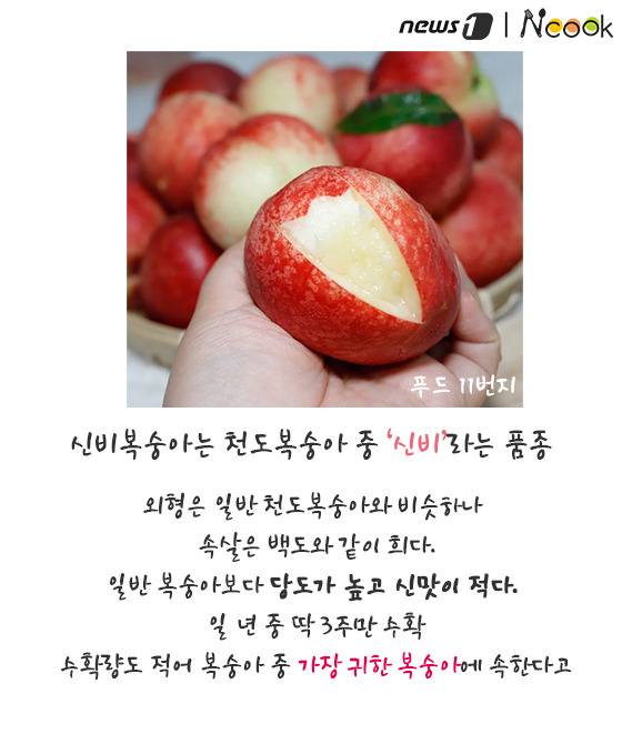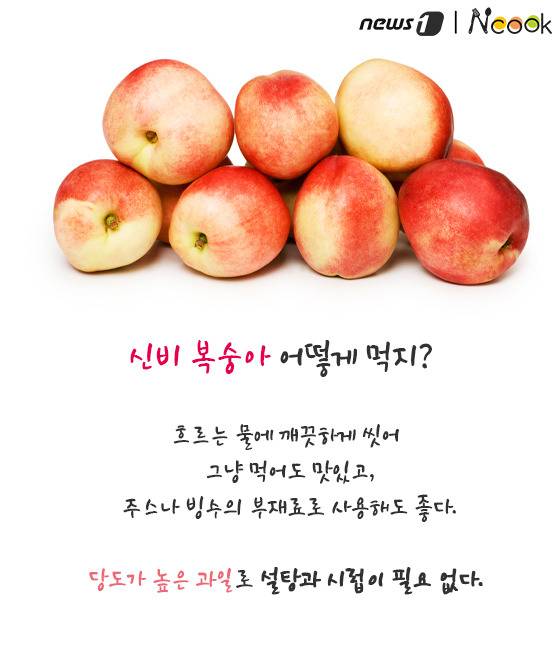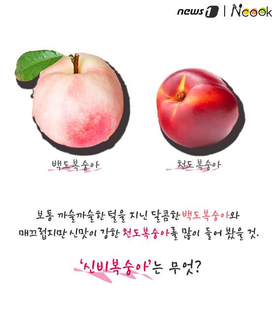 (서울=뉴스1) 김수경 에디터 = 비타민과 유기산이 풍부하여 더운 여름철 피로 해소에 제격인 복숭아. 6월~8월이 제철인 복숭아는 과육색에 따라 백도와 황도로 나뉜다. 그런데 최근 겉은 천도복숭아처럼 단단하지만 속은 백도 복숭아처럼 하얗고 말랑말랑한 복숭아가 나타났다. 이름부터 신비한 ‘신비복숭아’에 대해 알아보자.