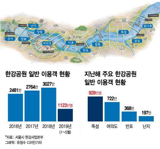 24일 서울시에 따르면 한강공원을 찾는 이용자수는 2016년 2481만명에서 2018년 3027만명으로 증가세다. 이는 한강공원이 서울시민의 휴식처이자 여가 공간으로 성공적으로 자리 잡았음을 말해준다.