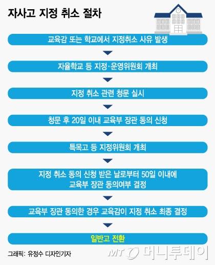교육부가 다음 달 중 전북·경기교육청의 자사고 지정 취소 요청을 받아들일 경우 자사고의 일반고 전환이라는 상황을 맞는다. 지난 2015년 서울 미림여고 이후 첫 사례다.