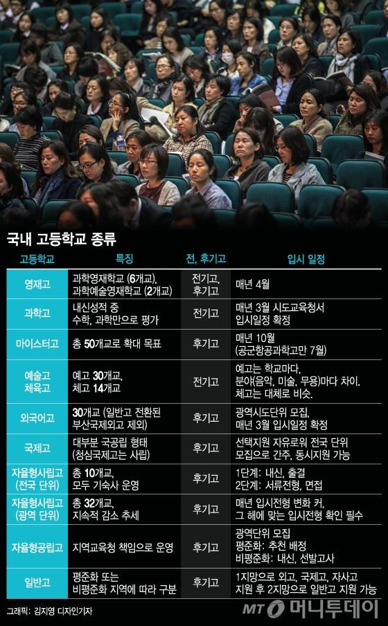 잘 모르니 그냥 일반고에 보낼까 싶다가도, 아이 특성에 맞는 곳이 있을까 싶어 입시 설명회 등을 기웃거린다. 이씨는 "고등학교마다 종류도, 특성도, 입시일정도 천차만별이라 공부를 열심히 해야 한다"고 말했다.