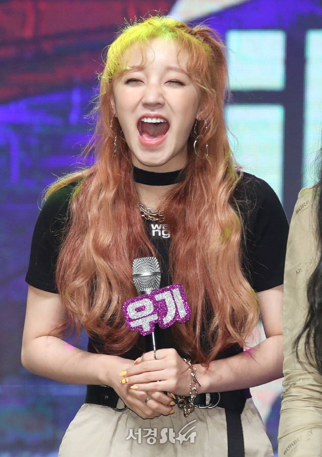 [서울경제] (여자)아이들 우기가 26일 오후 서울 용산구 블루스퀘어 아이마켓홀에서 열린 두번째 디지털싱글 ‘Uh-Oh(어-오)’ 발표 기념 쇼케이스에 참석해 포즈를 취하고 있다.