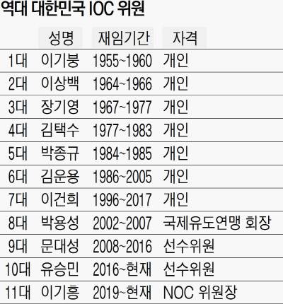 - 이기흥 대한체육회장, 대한민국 새 IOC 위원으로 선임