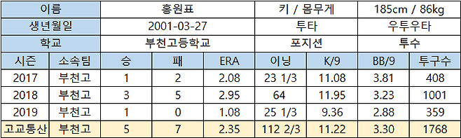#2 부천고 홍원표(185cm-86kg, 투수, 우투우타)