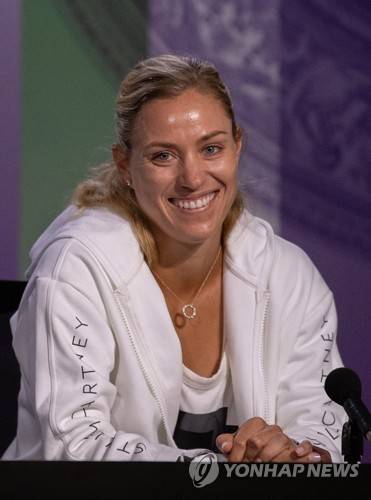 epa07684298 A handout photo made available by the AELTC shows Angelique Kerber of Germany addressing to media during her pre-Championships press conference in the Main Interview Room during the Wimbledon Championships at the All England Lawn Tennis Club, in London, Britain, 29 June 2019. EPA/AELTC/Ben Solomon EDITORIAL USE ONLY/NO COMMERCIAL SALES