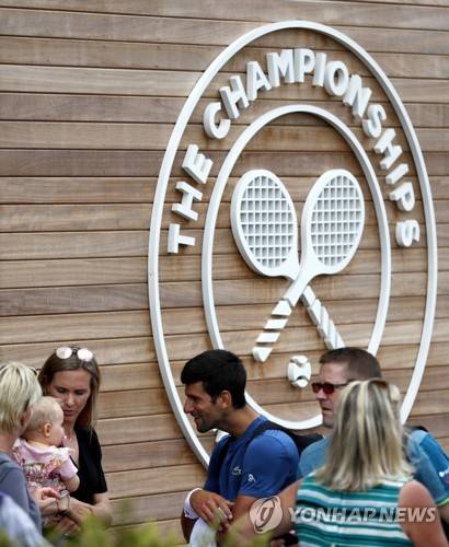 epa07684578 Novak Djokovic (C) of Serbia arrives for a training session during the Wimbledon Championships at the All England Lawn Tennis Club, in London, Britain, 30 June 2019. EPA/NIC BOTHMA EDITORIAL USE ONLY/NO COMMERCIAL SALES