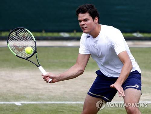 epa07684599 Milos Raonic from Canada in action during a training session for the Wimbledon Championships at the All England Lawn Tennis Club, in London, Britain, 30 June 2019. EPA/NIC BOTHMA EDITORIAL USE ONLY/NO COMMERCIAL SALES