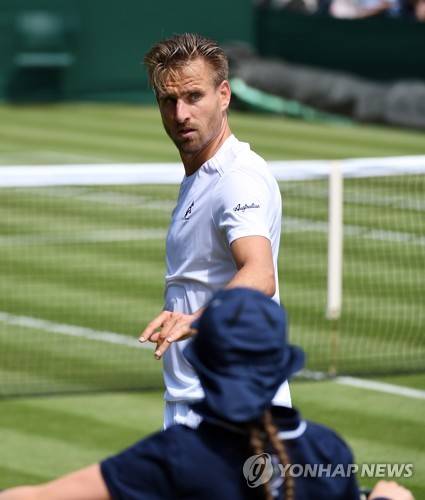 epa07687014 Peter Gojowczyk of Germany takes on Roberto Bautista Agut of Spain in their first round match during the Wimbledon Championships at the All England Lawn Tennis Club, in London, Britain, 01 July 2019. EPA/ANDY RAIN EDITORIAL USE ONLY/NO COMMERCIAL SALES