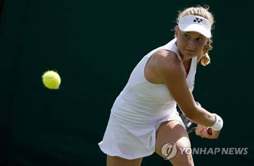 epa07687052 Bernarda Pera of the USA in action against Maria Sakkari of Greece during their first round match at the Wimbledon Championships at the All England Lawn Tennis Club, in London, Britain, 01 July 2019. EPA/WILL OLIVER EDITORIAL USE ONLY/NO COMMERCIAL SALES