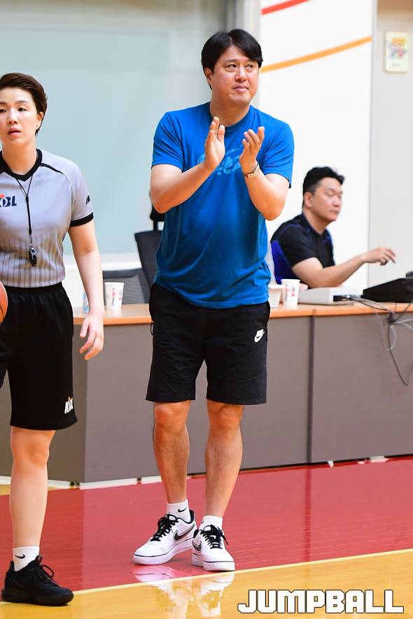 [점프볼=용인/박상혁 기자] 2일 용인시 양지 SK나이츠 연습체육관에서 열린 SK와 고려대의 연습경기, SK 문경은 감독이 선수들에게 박수를 보내고 있다. 2019-07-02 박상혁(sea80288@naver.com)