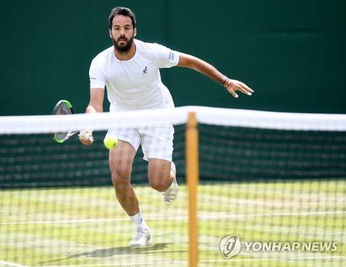 epa07689423 Salvatore Caruso of Italy in action against Gilles Simon of France during their first round match at the Wimbledon Championships at the All England Lawn Tennis Club, in London, Britain, 02 July 2019. EPA/ANDY RAIN EDITORIAL USE ONLY/NO COMMERCIAL SALES