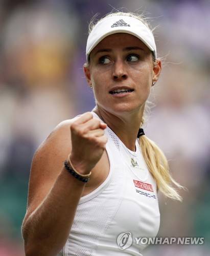 epa07689556 Angelique Kerber of Germany celebrates her win over compatriot Tatjana Maria in their first round match during the Wimbledon Championships at the All England Lawn Tennis Club, in London, Britain, 02 July 2019. EPA/WILL OLIVER EDITORIAL USE ONLY/NO COMMERCIAL SALES