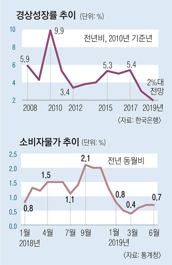 경상성장률이 2%대로 주저앉으면 지난해에 이어 최저 수준 기록을 또 갈아치우게 된다.