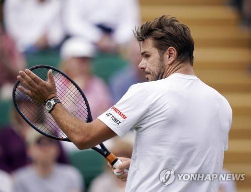 epa07691582 Stan Wawrinka of Switzerland plays Reilly Opelka of USA in their second round match during the Wimbledon Championships at the All England Lawn Tennis Club, in London, Britain, 03 July 2019. EPA/WILL OLIVER EDITORIAL USE ONLY/NO COMMERCIAL SALES