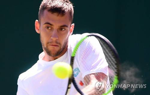 epa07694209 Laslo Djere of Serbia in action against John Millman of Australia during their second round match at the Wimbledon Championships at the All England Lawn Tennis Club, in London, Britain, 04 July 2019. EPA/ANDY RAIN EDITORIAL USE ONLY/NO COMMERCIAL SALES