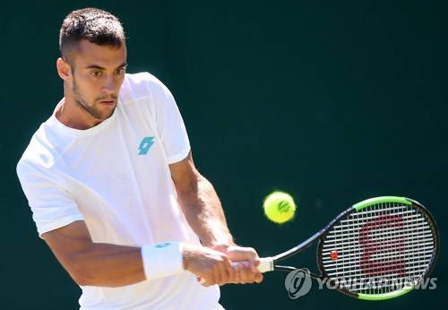 epa07694210 Laslo Djere of Serbia in action against John Millman of Australia during their second round match at the Wimbledon Championships at the All England Lawn Tennis Club, in London, Britain, 04 July 2019. EPA/ANDY RAIN EDITORIAL USE ONLY/NO COMMERCIAL SALES