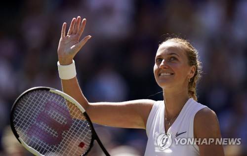 epa07694693 Petra Kvitova of the Czech Republic celebrates her straight sets win over Kristina Mladenovic of France in their second round match during the Wimbledon Championships at the All England Lawn Tennis Club, in London, Britain, 04 July 2019. EPA/WILL OLIVER EDITORIAL USE ONLY/NO COMMERCIAL SALES