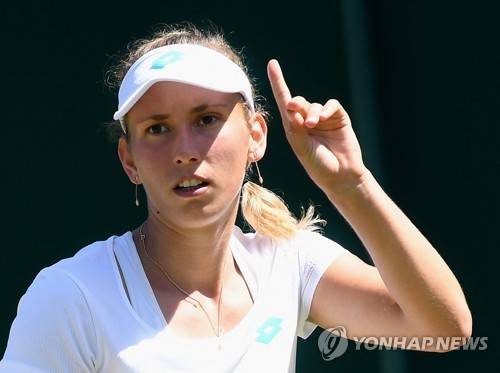 epa07694763 Elise Mertens of Belgium in action against Monica Niculescu of Romania during their second round match at the Wimbledon Championships at the All England Lawn Tennis Club, in London, Britain, 04 July 2019. EPA/ANDY RAIN EDITORIAL USE ONLY/NO COMMERCIAL SALES