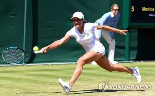 epa07694762 Monica Niculescu of Romania in action against Elise Mertens of Belgium during their second round match at the Wimbledon Championships at the All England Lawn Tennis Club, in London, Britain, 04 July 2019. EPA/ANDY RAIN EDITORIAL USE ONLY/NO COMMERCIAL SALES
