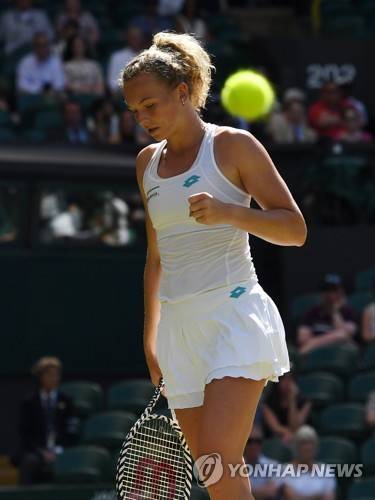 epa07694832 Katerina Siniakova of the Czech Republic plays Johanna Konta of Britain in their second round match during the Wimbledon Championships at the All England Lawn Tennis Club, in London, Britain, 04 July 2019. EPA/FACUNDO ARRIZABALAGA EDITORIAL USE ONLY/NO COMMERCIAL SALES