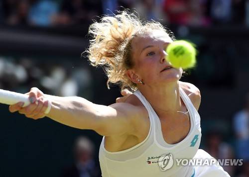 epa07694839 Katerina Siniakova of the Czech Republic returns to Johanna Konta of Britain in their second round match during the Wimbledon Championships at the All England Lawn Tennis Club, in London, Britain, 04 July 2019. EPA/FACUNDO ARRIZABALAGA EDITORIAL USE ONLY/NO COMMERCIAL SALES