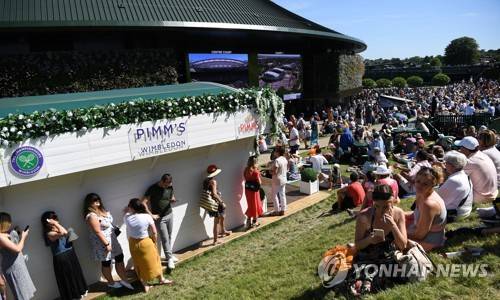 epa07694938 Tennis fans soak up the sun on the grounds during the Wimbledon Championships at the All England Lawn Tennis Club, in London, Britain, 04 July 2019. EPA/ANDY RAIN EDITORIAL USE ONLY/NO COMMERCIAL SALES