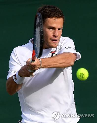 epa07695457 Diego Schwartzman of Argentina in action against Dominik Koepfer of Germany during their second round match at the Wimbledon Championships at the All England Lawn Tennis Club, in London, Britain, 04 July 2019. EPA/ANDY RAIN EDITORIAL USE ONLY/NO COMMERCIAL SALES