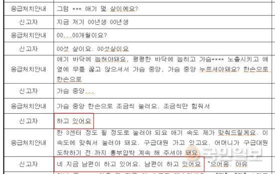 하지만 당시 아이에 대한 CPR이 이뤄진 증거와 정황은 분명했다. 국민일보는 당시 구급활동일지를 입수해 이같은 사실을 확인했다. 당시 현장에 출동한 구조대원은 “환아는 방 안 침대 위에 엎어진 채로 아이 아빠에게 발견됐다하며 이불과 환아 비강에 출혈 흔적이 있음. 구급대원 도착 당시 거실에 아이를 눕혀 부모가 CPR 중”이라고 기록했다.