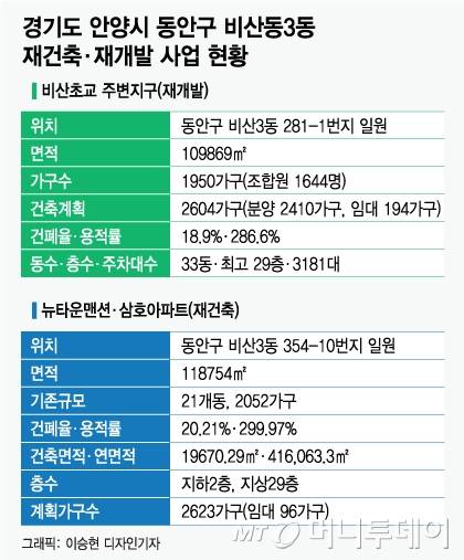 두 아파트 모두 '비산초교주변지구주택재개발사업'에 속해 있다. 이곳 개발 사업은 지난 2월 안양시로부터 사업시행계획인가를 받았고, 현재 조합원 대상의 분양 신청 접수가 진행되고 있다.