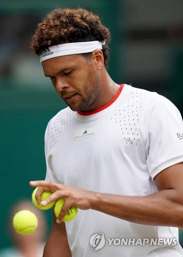 epa07699078 Jo-Wilfried Tsonga of France in action against Rafael Nadal of Spain during their third round match at the Wimbledon Championships at the All England Lawn Tennis Club, in London, Britain, 06 July 2019. EPA/WILL OLIVER EDITORIAL USE ONLY/NO COMMERCIAL SALES