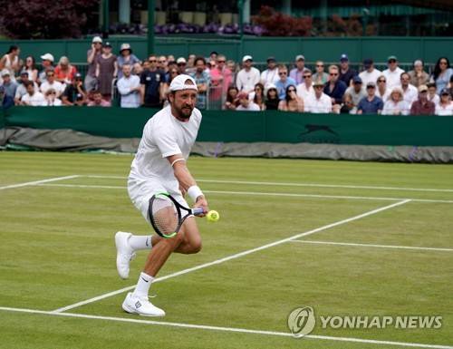 epa07699085 Tennys Sandgren of the USA in action against Fabio Fognini of Italy during their third round match at the Wimbledon Championships at the All England Lawn Tennis Club, in London, Britain, 06 July 2019. EPA/NIC BOTHMA EDITORIAL USE ONLY/NO COMMERCIAL SALES