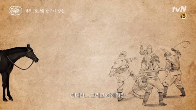 앞서 은섬(송중기 분)이 노예가 돼 감옥에 갇히는 모습을 지켜보며 ‘약한 사내다’고 속말한 뒤 사라진 전설의 말 칸모르의 행방이 이날 방송말미 쿠키 영상을 통해 공개됐다.
