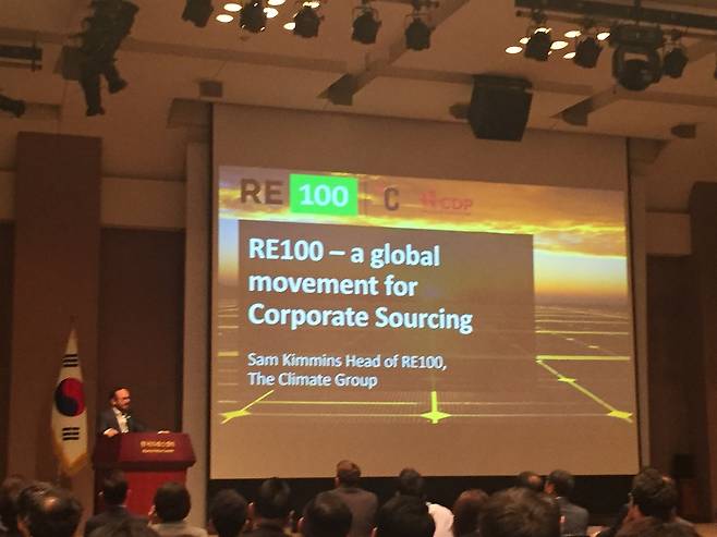 RE100 이니셔티브를 주관하고 있는 기후그룹의 샘 키민스 대표는 이 날 포럼에서 "한국에도 에너지혁명을 주도할 히어로 기업이 필요하다"며 "RE100을 통해 기업이 새로운 길을 개척하는 것"이라고 한국기업의 참여를 강조했다.