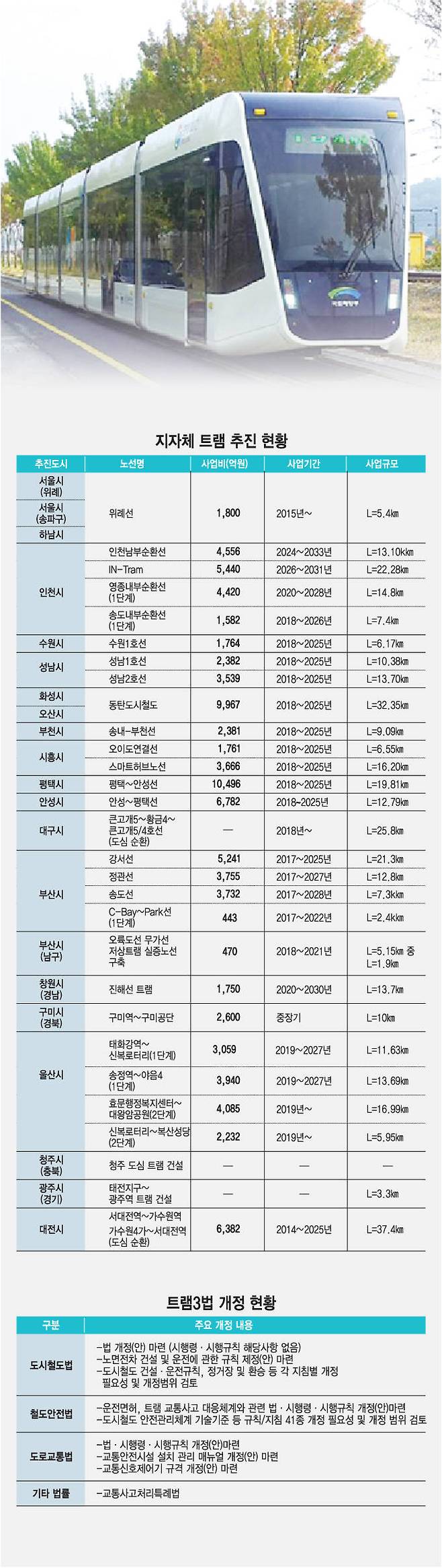 정부는 도시철도법, 철도안전법, 도로교통법 등 이른바 트램3법 개정을 마무리하며 본격적인 운행을 위한 법적 조치도 마쳤다. 트램 관련 국내 기술도 상당한 수준이다.